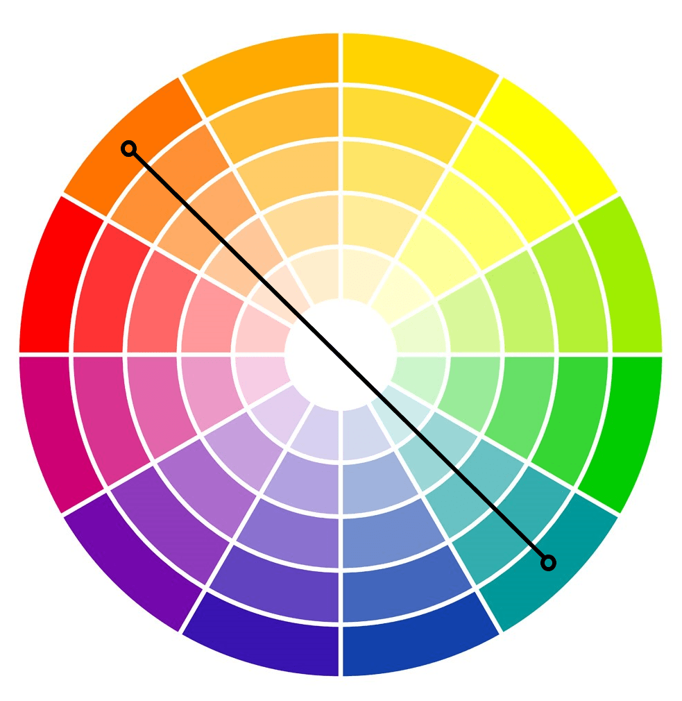 上图是一个互补组合的例子:蓝色和橙色。注意它们在色轮上是如何直接相对的。