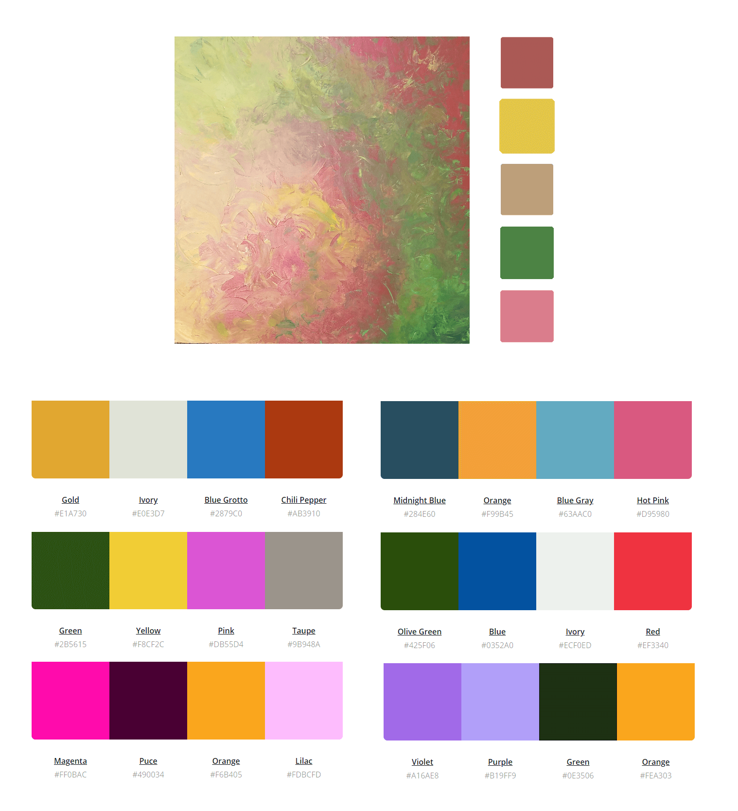 还有许多应用程序和网站可以帮助你做出决定。我们喜欢在Canva的调色板生成器在这里,您可以拖放喜爱的照片来检索调色板。