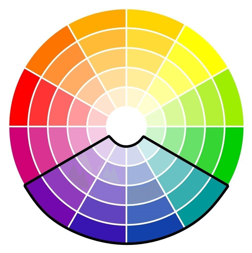 - 温暖和凉爽。暖色是那些类似或象征热的颜色,而冷色则归因于冰和较冷的温度。例如:红色、橙色、黄色和红紫色是暖色,而蓝色、紫色、绿色和蓝绿色是冷色。