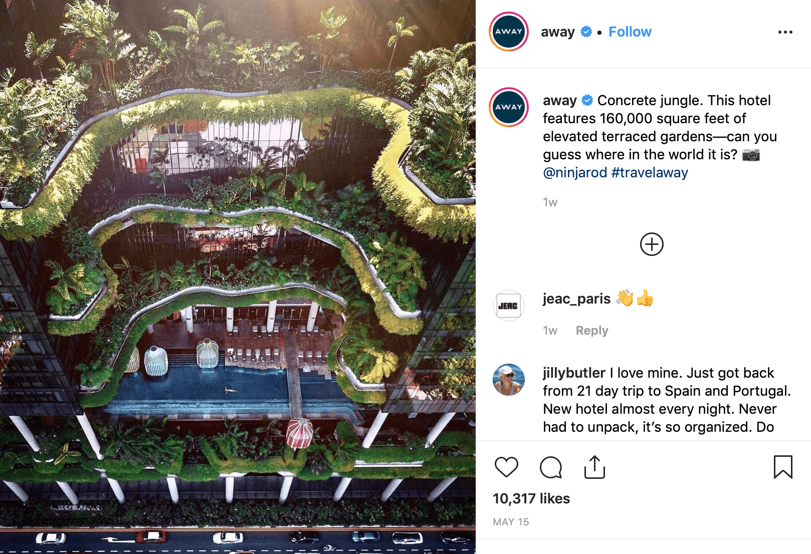 比如旅游品牌走了鼓励人们使用有趣、独特的提示与他们的帖子进行互动: