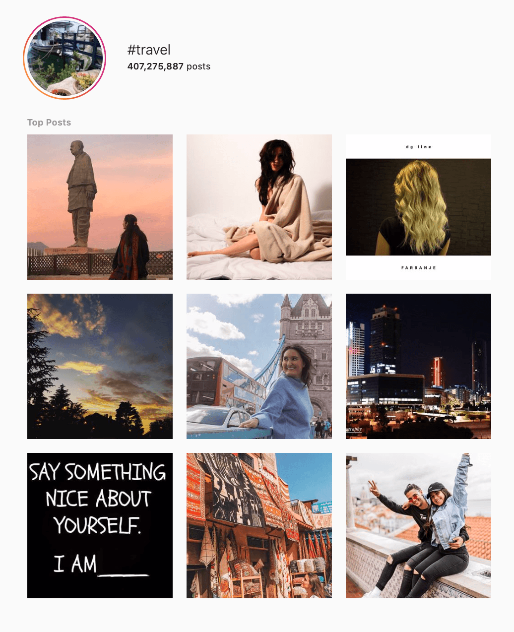 例如,#旅行标签目前有超过4.06亿个帖子: