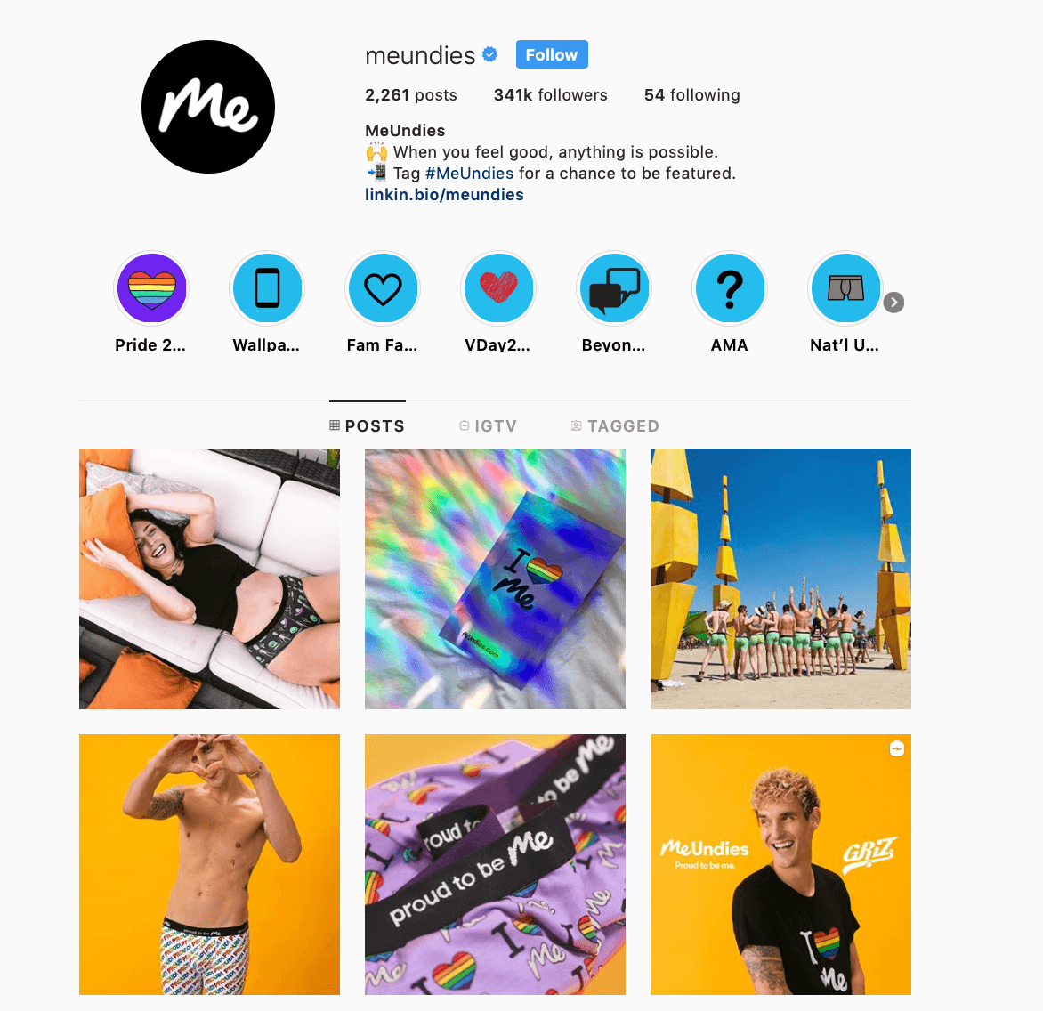 在这里您可以看到自定义URL@MeUndies他们可以通过帖子标题和Instagram故事来引导用户;
