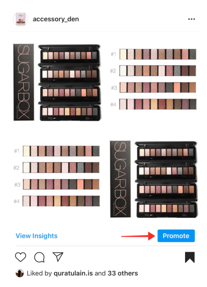 投放广告最简单的方法就是推广你在Instagram上分享的帖子。只需选择你想提升的帖子,然后点击“提升”按钮。