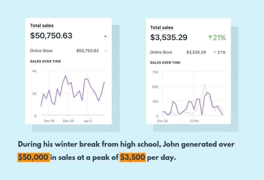 最后,年仅15岁的约翰开了一家电子商务商店,第一年的销售额就超过了六位数。