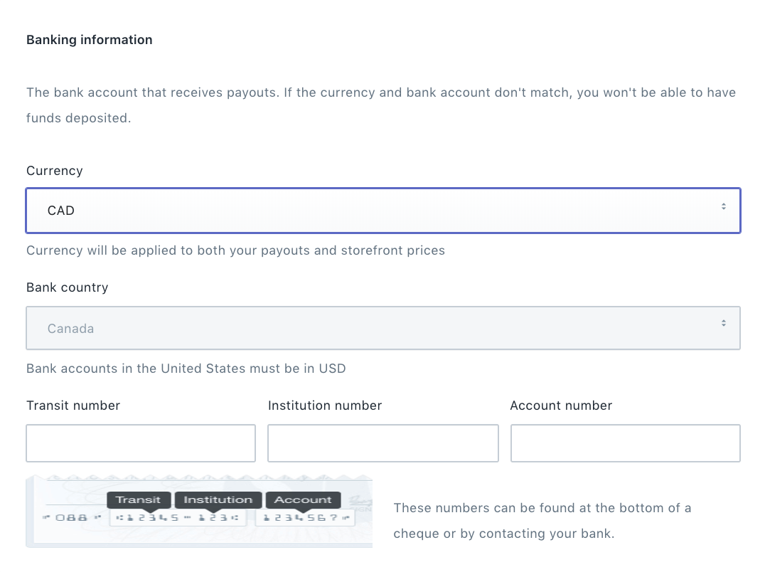 然后,我向下滚动到“银行信息”,这样我就可以将我的货币转换为美元。如果你还没有美元账户,你需要去你的银行开一个美元账户,但建立一个美元账户的过程通常很简单。你甚至可以在网上而不是亲自去做。您可以在您的美元账户直接存款表格上找到您的账户详细信息。