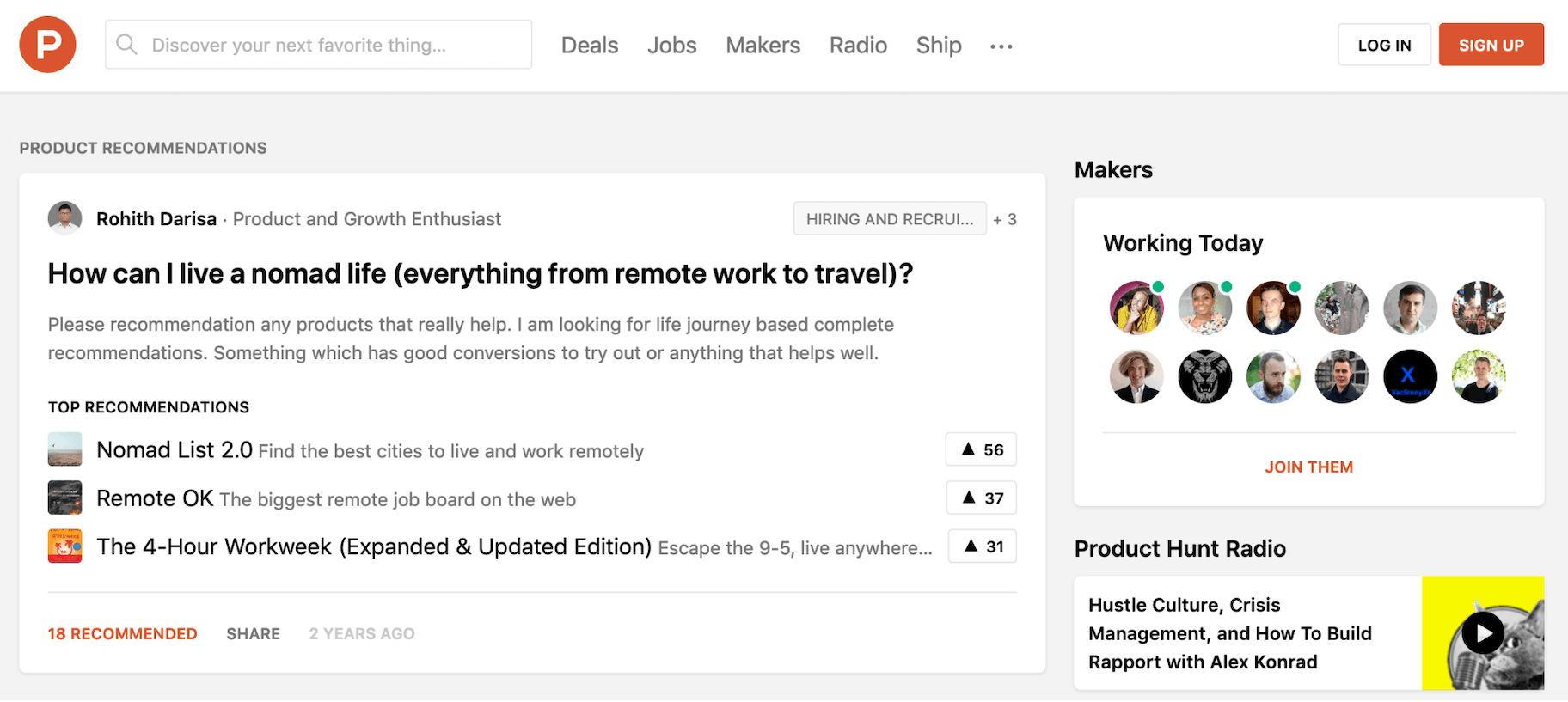 产品搜索是一个帮助用户分享和发现新产品的网站。生活方式品牌启动Drugz用Product Hunt开车35000次独立访问到他们的网上商店。