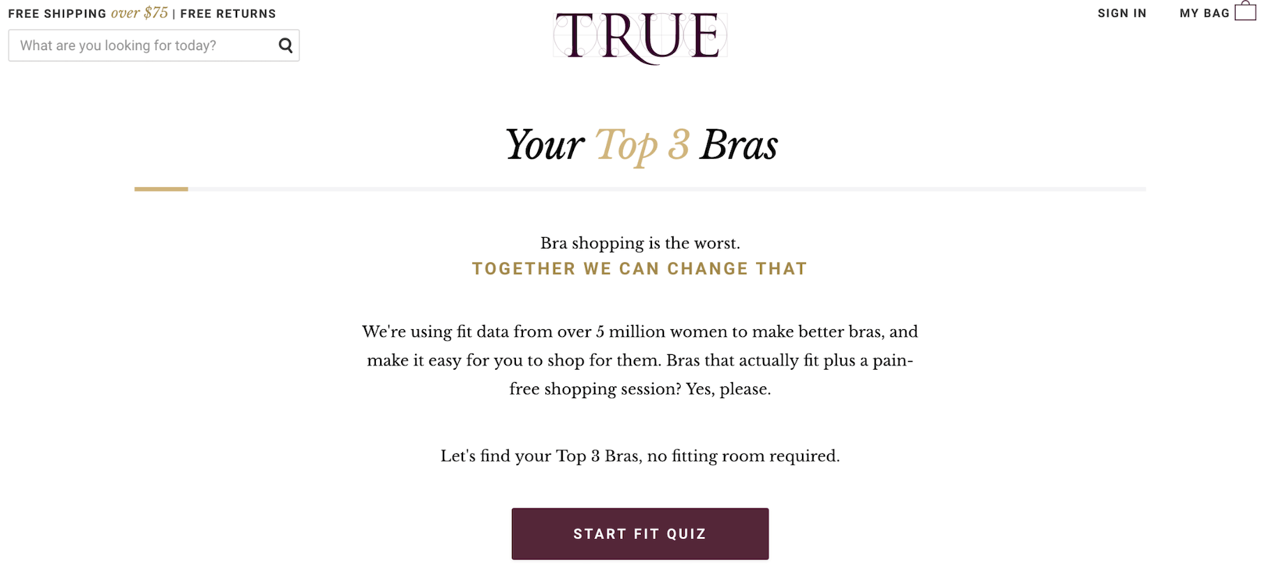 内衣公司True & Co。在他们的网站上有一个测试,帮助用户选择合适的胸罩尺寸。他们根据用户的回答向用户推荐产品。