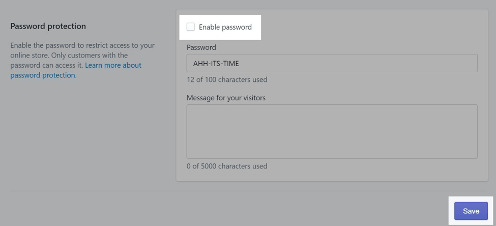 在下一个屏幕上,取消选中“启用密码”框并单击“保存”。