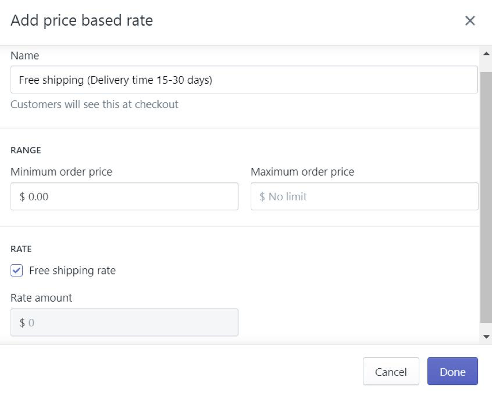 如果你提供免费送货,就输入。顾客不会看到这个标签。