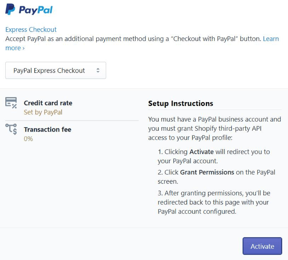 要设置它,请点击“支付提供商”页面PayPal部分的“激活”按钮。