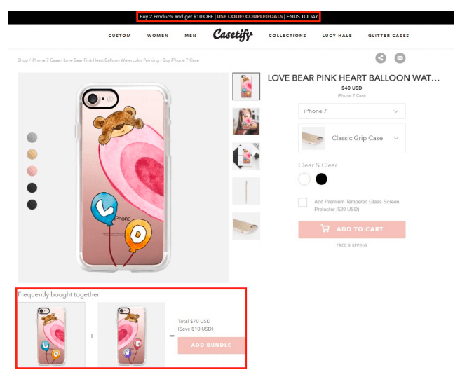 最后,Casetify还提供产品折扣,当你购买至少两个手机壳。这是一种有效的捆绑产品的方式,特别是如果你展示了顾客在购买时可以节省多少钱。