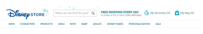 迪士尼的顶部导航布局是高度优化的。根据只有,顶部导航中的第一个和最后一个项目获得最多的视图。很明显,“新”被添加为第一个项目,因为迪士尼明白客户想要轻松查看新项目。最后一个顶部导航项是“Sale”。