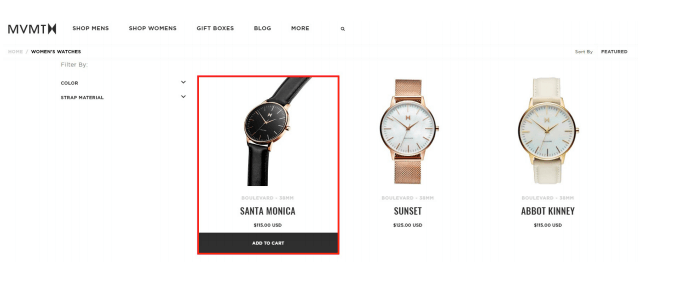 该品牌网站的另一个优点是,客户可以从产品列表页面“添加到购物车”。当他们滚动产品库存时,他们可以添加项目,而无需进入产品页面。这有助于简化准备购买的顾客的购物体验。