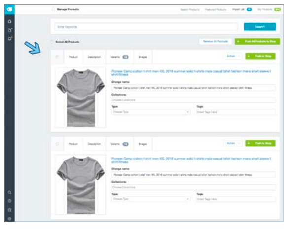 只要去Oberlo导入列表,编辑导入的产品并将其发布到您的商店。