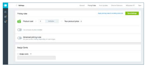 在将产品导入到您的商店之前,您应该设置应用程序。去Oberlo设置页面,设定你的价格规则,并探索其他设置。
