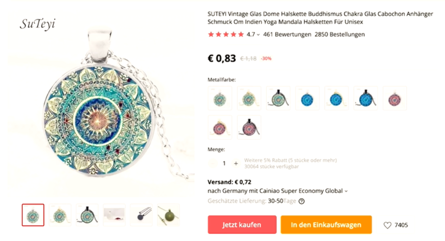 说实话,看到这些玻璃吊坠在清单上我有点惊讶。但是,正如我提到的,数据从不说谎。这就是为什么我喜欢dropshipping。因为我自己,一直在学习确保我听从数字和数据,而不是我自己的假设。